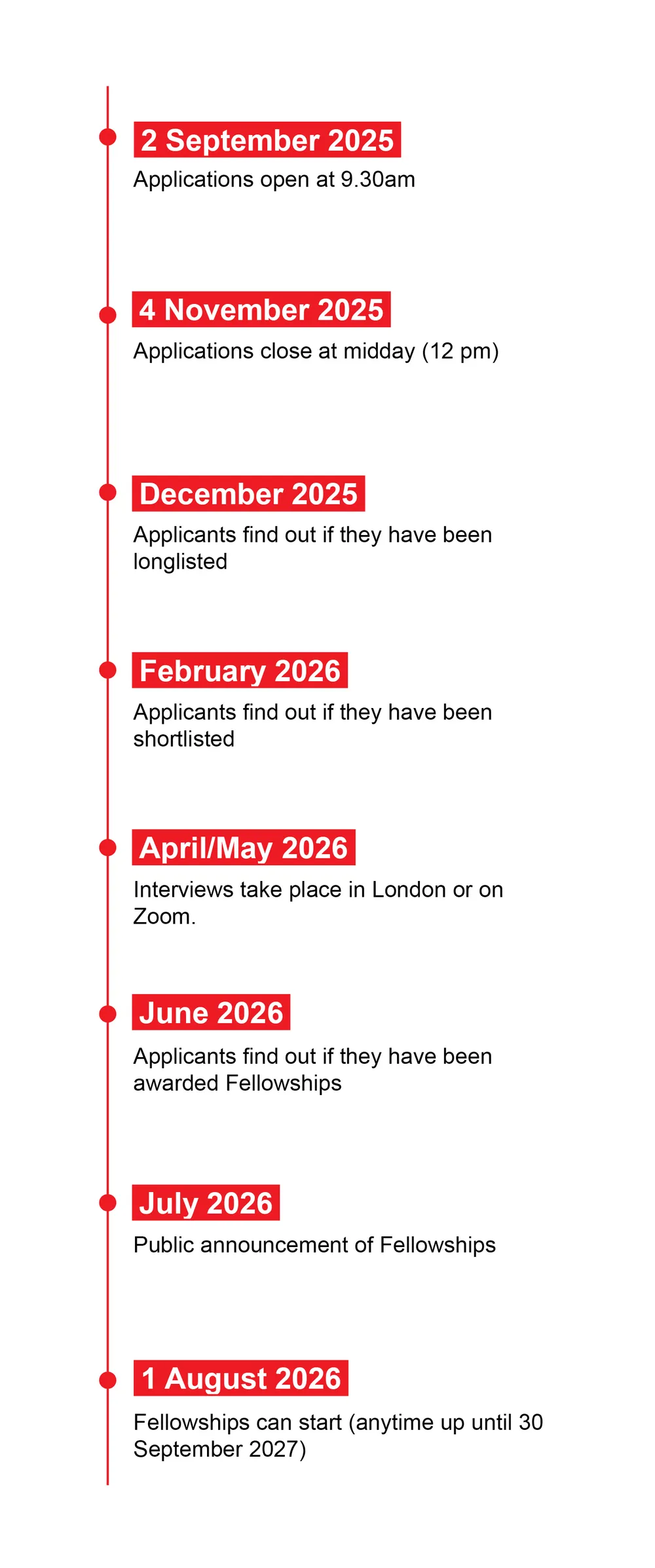 The timeline for this year's application process is as follows: